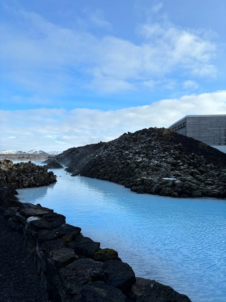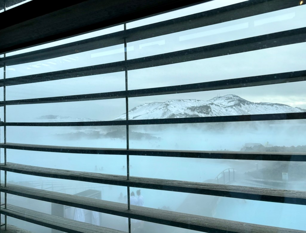 氤氳之氣瀰漫在冷空氣中,泡在粉藍色的溫泉湖中,一切彷彿猶如人間仙境。